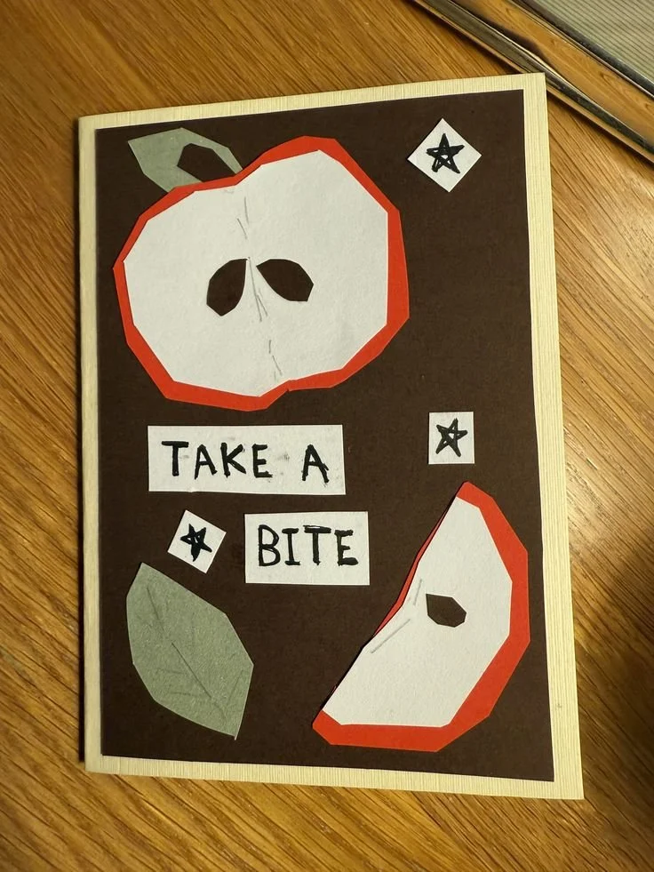 Although scrapbooking is usually associated with idea boards, drafting, and aesthetic curation. The concept can still be used to make designs on the page. Bold designs and shapes are easier to cut out and you can add extra details with pencil, pen, or marker. This photo also utilizes a cut-out style that can be used to remove letters or photos from magazines. Then they can be pasted and layered to create your desired look.